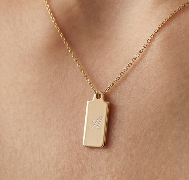 Our name necklace is crafted with 14K gold bonded over brass. Providing a thicker layer than gold-plated items. This demi-fine necklace piece is ideal for daily wear.